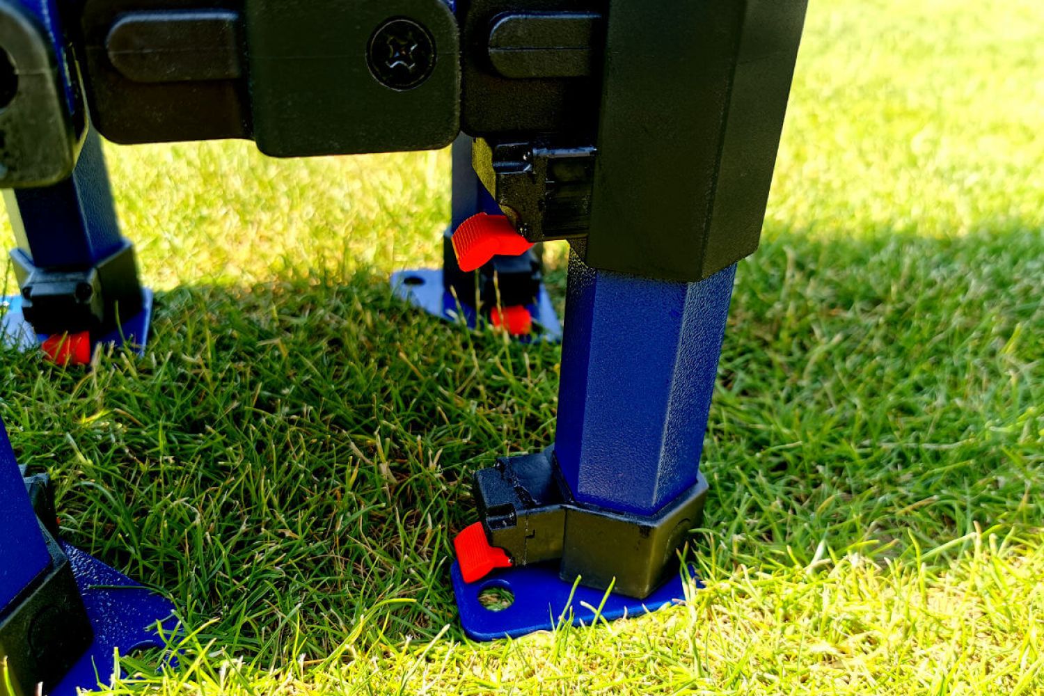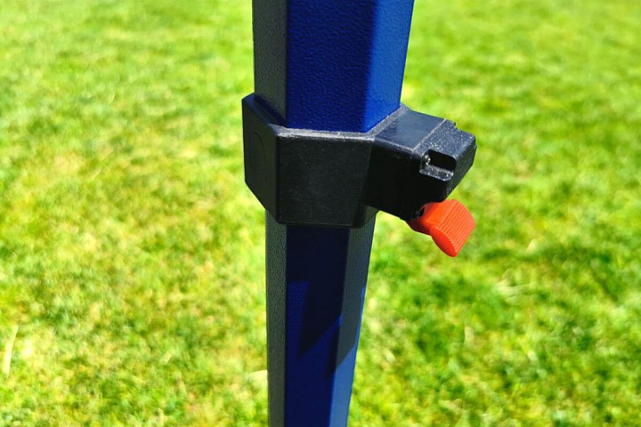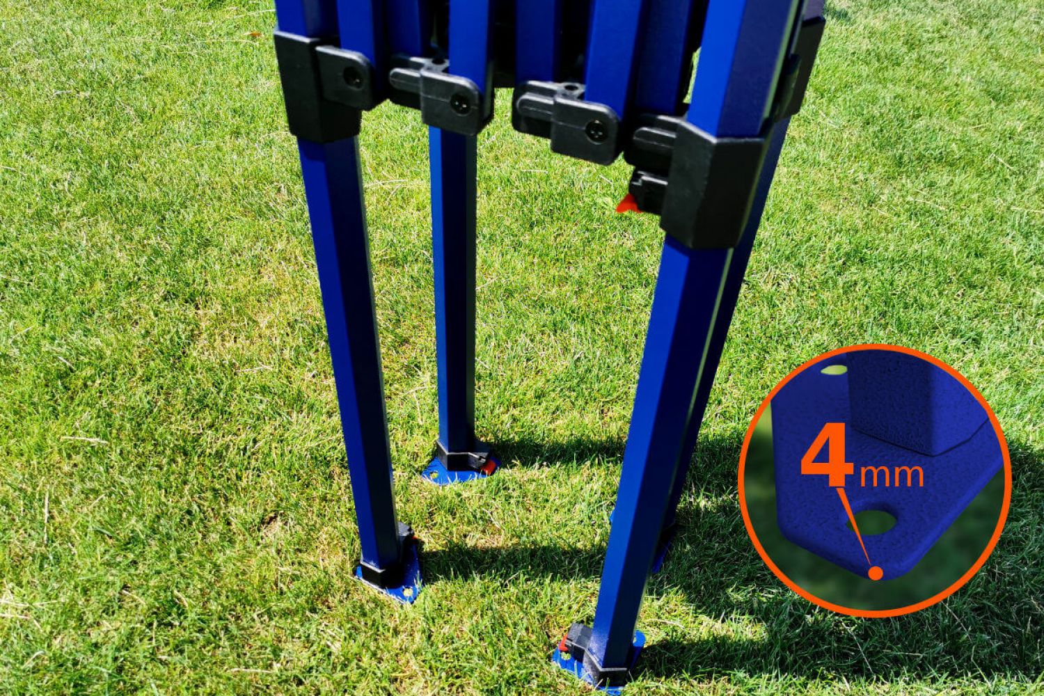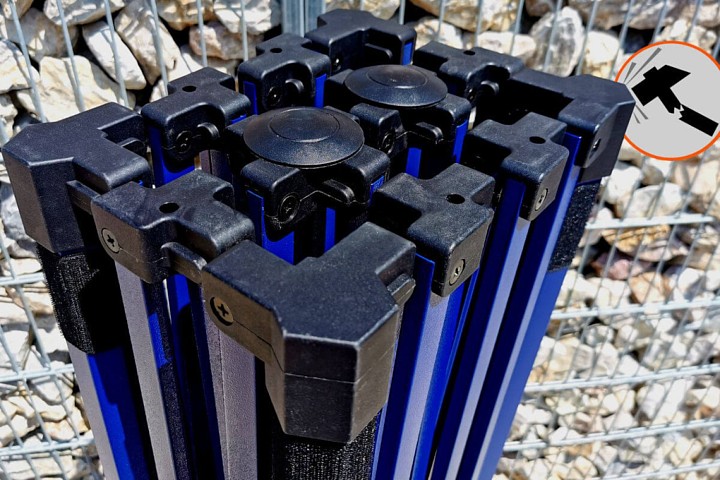 Bovendien is de stalen constructie van het Exclusive model stevig, stabiel en sterk, zodat je je geen zorgen hoeft te maken over presentaties of producten. Bij harde wind en de juiste verankering zul je het comfort voelen dat je niet zult ervaren als je goedkopere tenten op de markt koopt. Niet alleen jij, maar ook klanten zullen dit comfort van stabiliteit en snelle opbouw waarderen. De hoogwaardige blauwe kleur van de constructie beschermt tegen corrosie en geeft een unieke uitstraling.